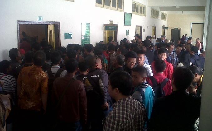 Mereka berdesak-desakkan satu sama lain lantaran mengikuti sidang tilang.