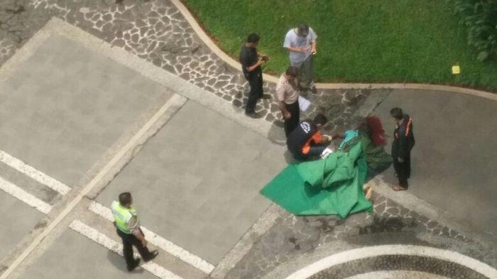 Korban yang belum diketahui identitasnya itu diduga terjatuh dari lantai 18 apartemen.