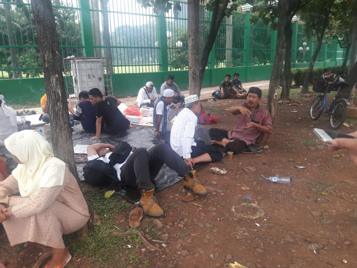 Satu di antara beberapa orang itu mengaku tidak melakukan aksi apa pun, hanya bertahan dan menunggu massa lain yang rencananya akan datang lagi.