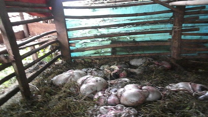 Anehnya para pelaku pencurian diduga menyembelih ke-12 ekor kambing tersebut di lokasi kejadian dan hanya meninggalkan isi perut kambing di dalam kandang.