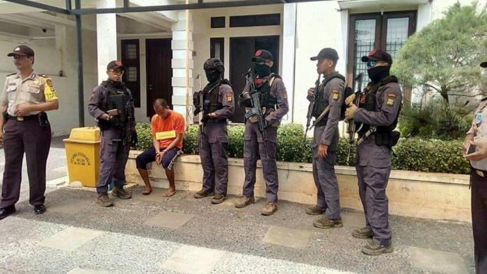 Suwandi yang dibekuk polisi di Pasar Minggu, Jakarta Selatan, dihadirkan dalam prarekonstruksi tersebut dan memperagakab 24 adegan.