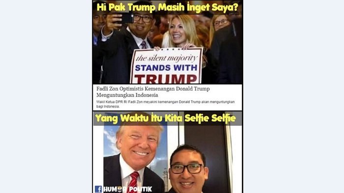 Kolase yang terdiri dari dua potret itu menggambarkan kedekatan antara Fadli Zon dengan Donald Trump, khususnya ketika masa pemilihan Presiden Amerika digelar pada pertengahan tahun 2017 lalu.