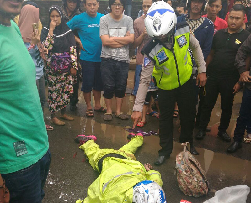 SEORANG pengemudi motor Honda Beat B-6639-VPE bernama Heppi Dayanti (30), tewas akibat terlindas truk.