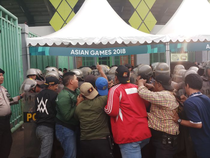 Usai insiden itu, tiba-tiba ada keramaian di depan loket penukaran tiket Asian Games. Sejumlah penonton mencoba menyerobot antrean sehingga membuat penonton lain yang sedang antre marah dan terjadi keributan.