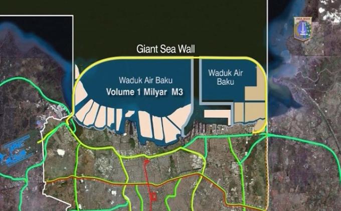 “Intinya sama tapi lebih dikembangkan, kalau cuma giant sea wall itu gunanya bikin tanggul saja. Tapi kalau ini (NCICD) kan tidak, di atas tanggul itu akan ada macam-macam nanti, ada tanggul baru, ada jalur kereta api, ada jalan tol, ada perumahan nelayan, penampungan nelayan,” katanya.