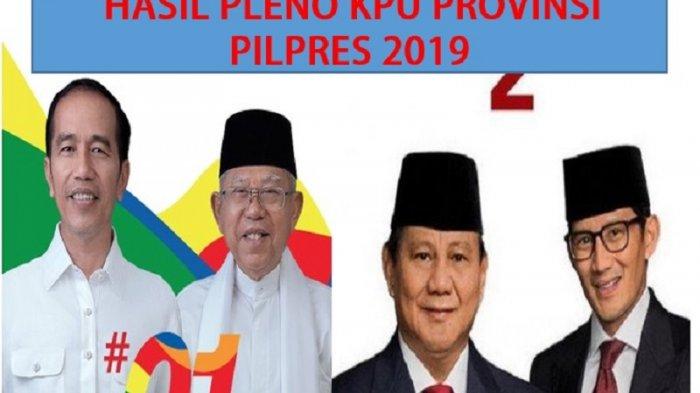 Berikut hasil real count KPU dan rekapitulasi Pilpres 2019 data 100% berdasarkan rapat pleno hasil penghitungan dan perolehan suara tingkat provinsi dan nasional.