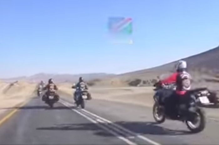 Keenam bikers itu juga sempat selfie sambil berjoget di tengah jalan di sebuah gurun pasir di Namibia.