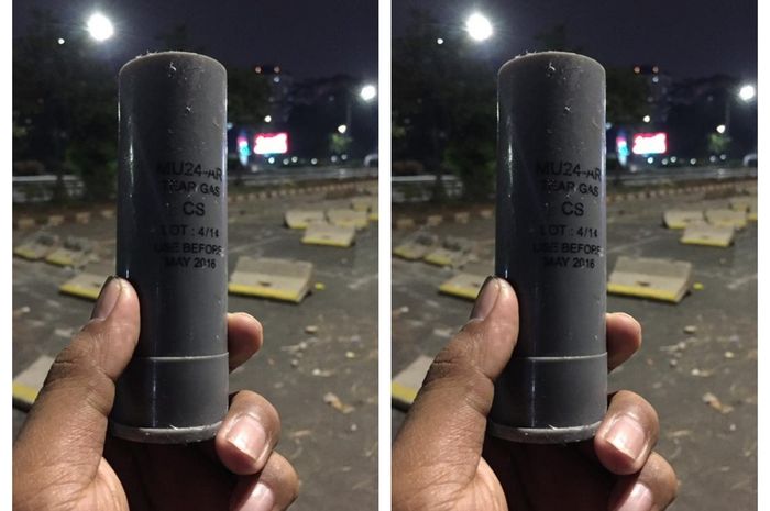 Di foto yang ia unggah dalam tweetnya tersebut, dijelaskan bahwa selongsong gas air mata yang ditemukan di lapangan bertuliskan masa kedaluwarsa pada Mei 2016.