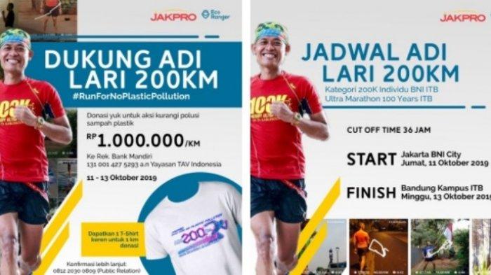 Di antaranya dengan berdonasi Rp1.000.000,- (satu juta rupiah) untuk setiap kilometer Adi berlari.