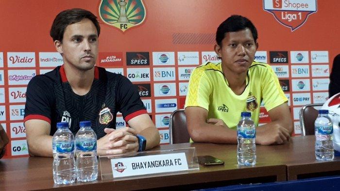 Gelandang Bhayangkara FC, Adam Alis turut serta dalam acara konferensi pers jelang laga kontra Persija Jakarta di Stadion PTIK, Jakarta, Jumat (13/3/2020).