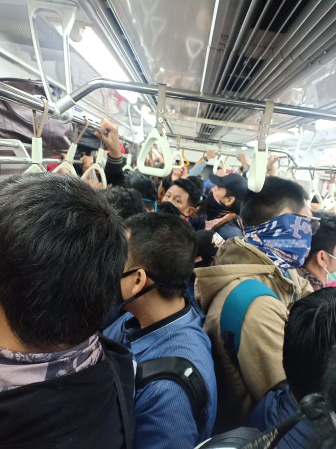 Dilihat dari kondisi ini, agak sulit mengatur social distancing di dalam commuterline.