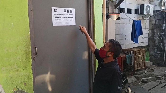Dengan tulisan ‘Rumah Pendatang Mudik Dalam Pengawasan Karantina Mandiri 14 Hari’.