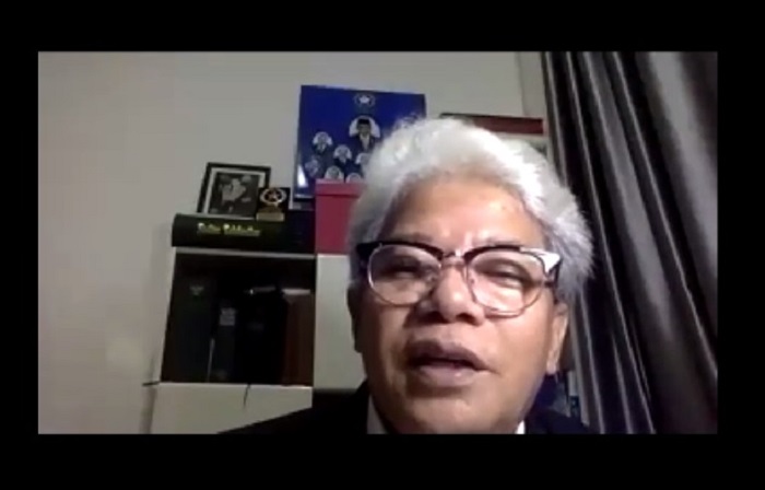 Caption: Wawancara via virtual Prof Dr Drs Sihol Situngkir MBA yang mengapresiasi kinerja BPJamsostek di tengah pandemi Covid-19. (Foto dok humas BPJamsostek Kebon Sirih)