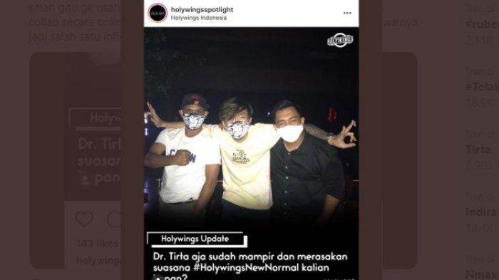 "Klarifikasi foto Tirta di Holywings. Sebenarnya dr Tirta datang ke Holywings untuk melihat Holywings Gunawarman. Karena kita sedang melakukan kolaborasi masker Holywings x dr. Tirta.