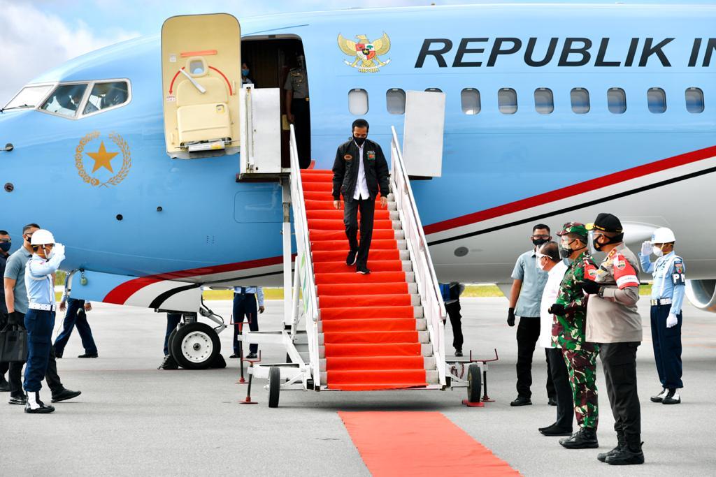 Bersama rombongan terbatas, Kepala Negara lepas landas menuju Kabupaten Tapanuli Utara dengan Pesawat Kepresidenan Indonesia-1 melalui Pangkalan TNI AU Halim Perdanakusuma sekira pukul 07.00 WIB.
