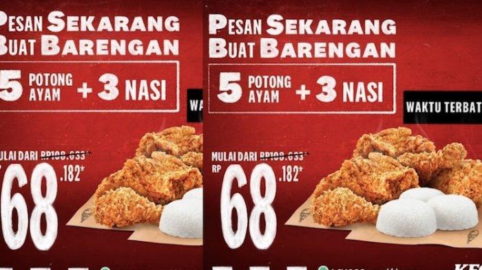 Promo KFC Hari Ini Paket Hemat 5 Ayam Goreng dan 3 Nasi Putih Cuma Rp 68.000-an