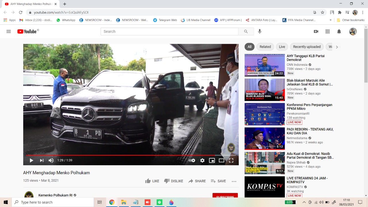 Di tengah ramai Kudeta AHY, Ketua Umum Partai Demokrat, Agus Harimurti Yudhoyono (AHY) mendatangi Kementerian Koordinator Bidang Politik Hukum dan Keamanan pada Senin (8/3/2021).