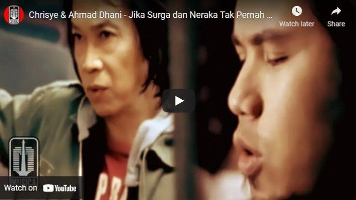 Berikut video dan lirik lagu Jika Surga dan Neraka Tak Pernah Ada dinyanyikan Chrisye dan Ahmad Dhani dikutip Wartakotalive.com dari Musixmatch, Rabu (7/4/2021).