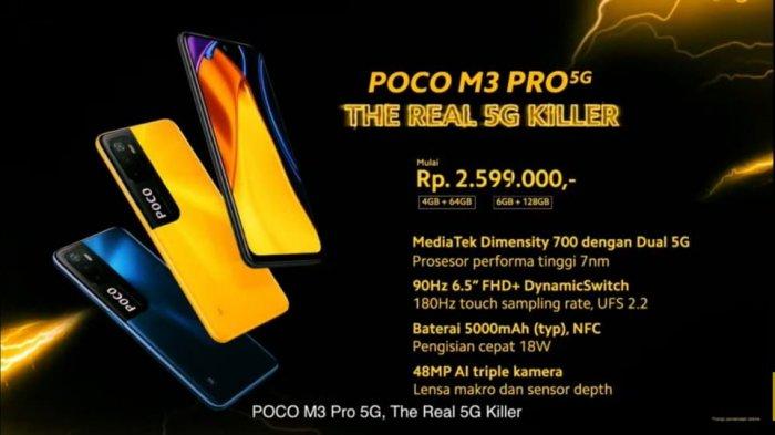 WARTAKOTALIVE.COM --- POCO Indonesia resmi meluncurkan penerus dari seri POCO M3, yakni POCO M3 Pro 5G yang disiarkan dikanal Youtube POCO Indonesia, Selasa (29/6/2021) malam.