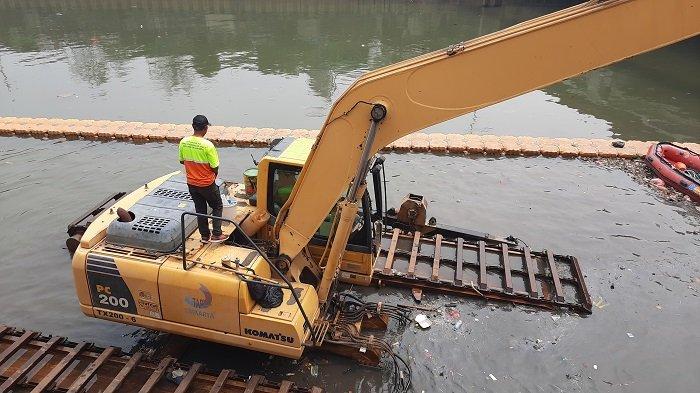 Sebuah excavator diterjunkan untuk mencari korban tenggelam di Kali Banjir Kanal Barat (BKB). Pintu air di kali tersebut juga sudah ditutup.