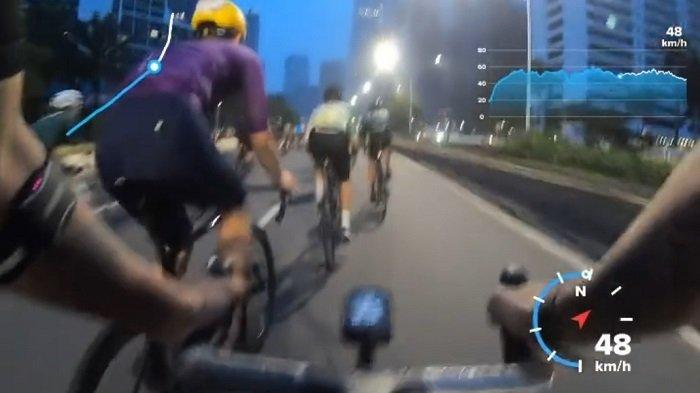 Video yang diunggah instagram @fitaminofficial memperlihatkan puluhan pesepeda melintas di Jalan Sudirman.