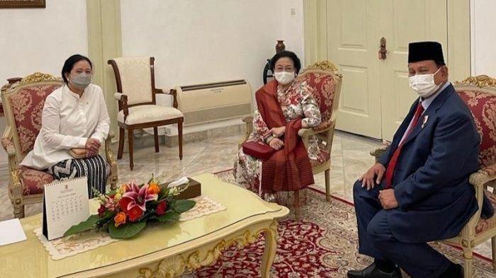 Menhan Prabowo Subianto dan Ketua Umum PDI Perjuangan Megawati Soekarnoputri terlibat dalam pertemuan hangat di Istana Kepresidenan.