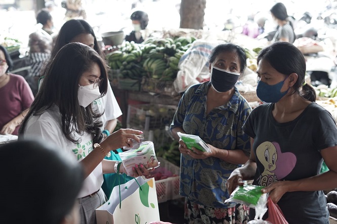Setelah penyerahan simbolis, pembagian healthy kit dilakukan di Pasar Kreneng, Denpasar.