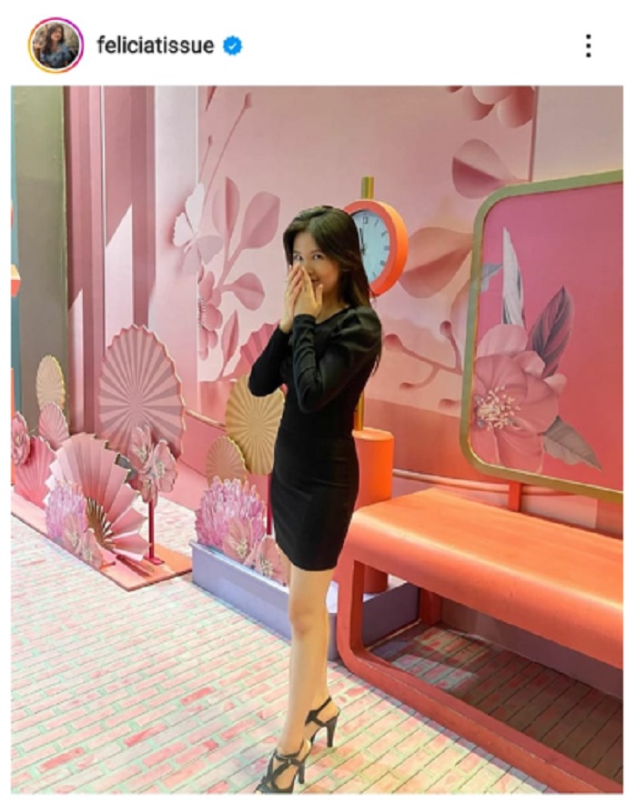 Pada unggahannya Felicia Tissue tampil cantik dengan menutup mulutnya, paras Felicia Tissue memukau dengan pakaian yang dikenakannya.