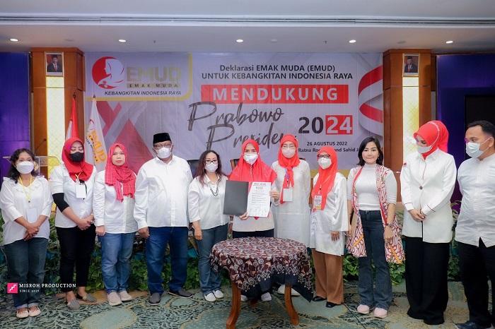 WARTAKOTALIVE.COM, JAKARTA--Sekelompok perempuan yang mengatasnamakan Emak Muda (Emud) menggelar deklarasi dukungan kepada Prabowo Subianto untuk menjadi calon presiden pada pemilihan presiden 2024.