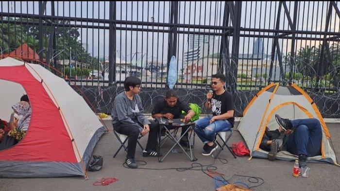 Sebaliknya, sejumlah massa aksi tersebut justru membawa dua buah tenda berukuran besar dan sedang yang digelar di depan gedung DPR.