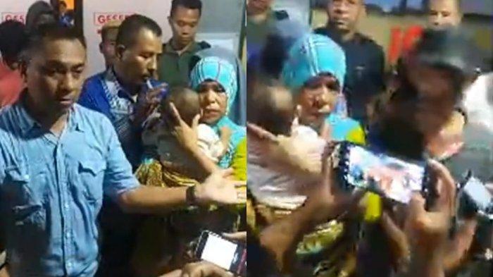 Sang ibu terlihat menggendong dan mendekap erat anaknya yang sempat diculik orang tidak dikenal (OTK) itu sembari menangis.