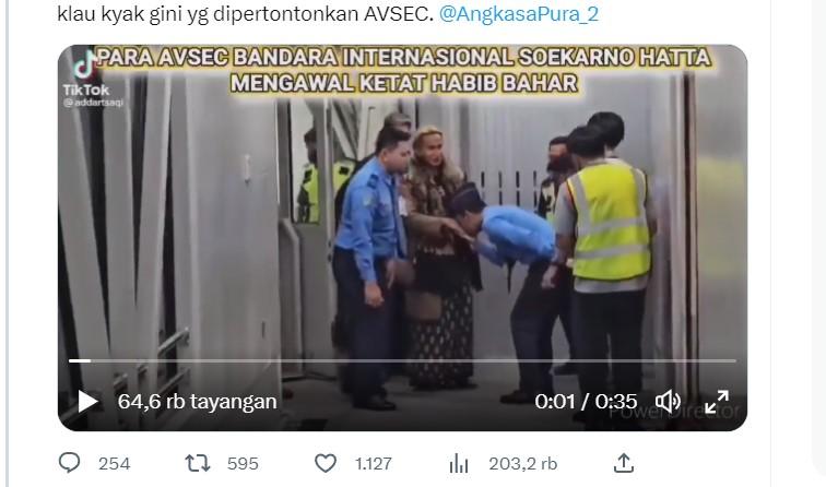 WARTAKOTALIVE.COM, JAKARTA -- Viral di media sosial video petugas Aviation Security (Avsec) Bandara Soekarno-Hatta (Soetta) memberikan pelayanan istimewa terhadap Habib Bahar bin Smith.