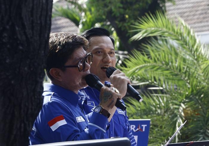 Kemudian, saat AHY tiba, ia pun langsung naik ke atas mobil komando dan bernyanyi bersama Andika Kangen Band.