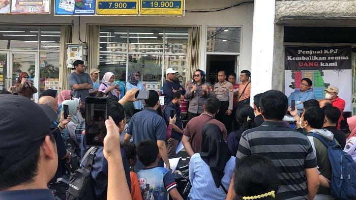 Salah seorang korban penipuan bernama Apri (37) mengatakan para korban mendatangi kantor tersebut dengan tujuan menagih janji pihak pengembang untuk tuntaskan akad perjanjian lahan kavling yang sebelumnya sudah dibayar hingga menjadi status Sertifikat Hak Milik (SHM).