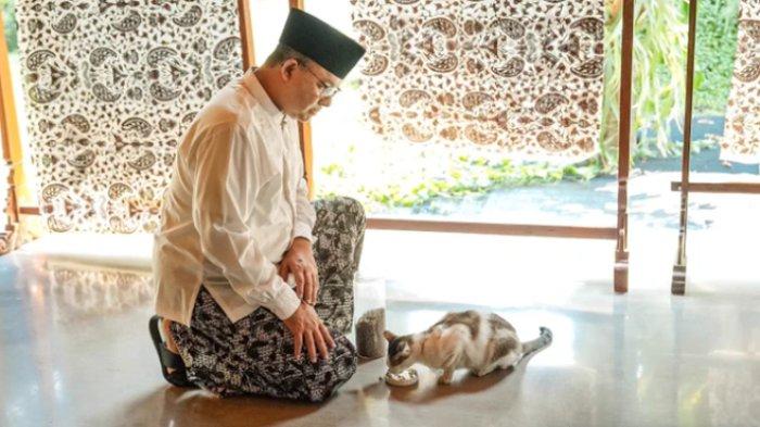 Momen kebersamaan Anies Baswedan bersama kucingnya dibagikan di akun twitternya pada Senin (14/8/2023). Anies Baswedan membagikan foto memberi makan kucing kampung di rumah joglo miliknya.