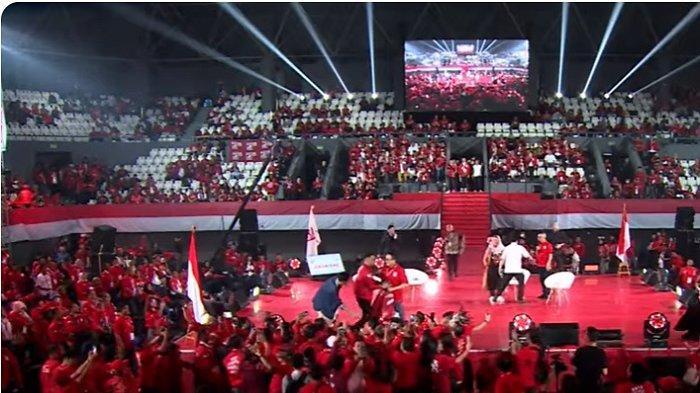 Gibran yang sedang menjadi pembicara dalam acara Kopdarnas tersebut tiba-tiba didatangi oleh seorang kader PSI di atas panggung.