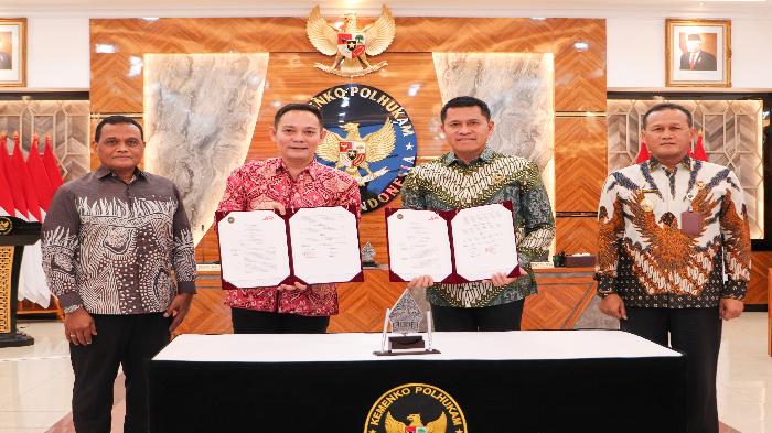 Adapun penandatanganan MoU tersebut dilakukan di Gedung Kemenko Polhukam, Jalan Medan Merdeka Jakarta Pusat, Rabu (8/11/2023).