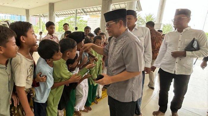 Sampai di lokasi, Pramono bertemu dengan anak-anak yang ada di masjid tersebut dan saling berjabat tangan.