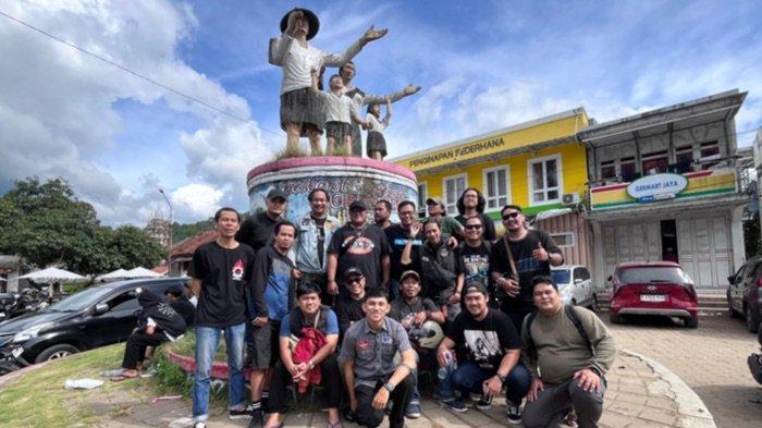 Penyuka hobi berkendara motor 'Motoran Riang Gembira' berpose bersama di Terminal Ciboleger, Leuwidamar, Lebak, Banten, Sabtu (4/1/2025). Terminal Ciboleger adalah pintu gerbang menuju Desa Adat Baduy di Desa Kanekes, Leuwidamar.