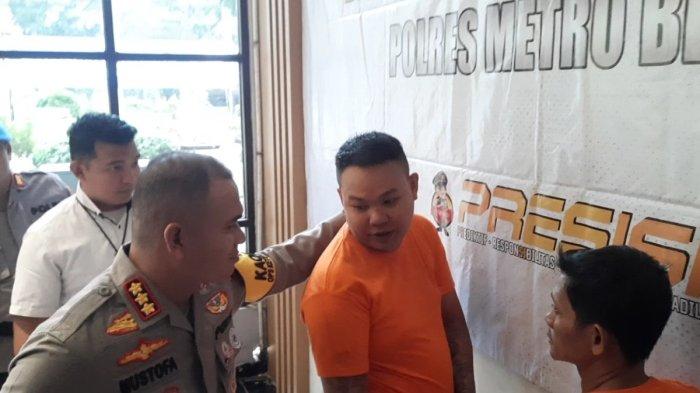 Polres Metro Bekasi menangkap dua pelaku pemerasan dengan kekerasan ke pedagang Pasar Induk Cibitung, Kabupaten Bekasi, Senin (24/3/2025).