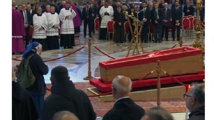 Suster biarawati yang berdarah Prancis-Argentina, menjadi perhatian publik, usai diizinkan melanggar protokol saat mengunjungi peti jenazah nya di Basilika Santo Petrus.