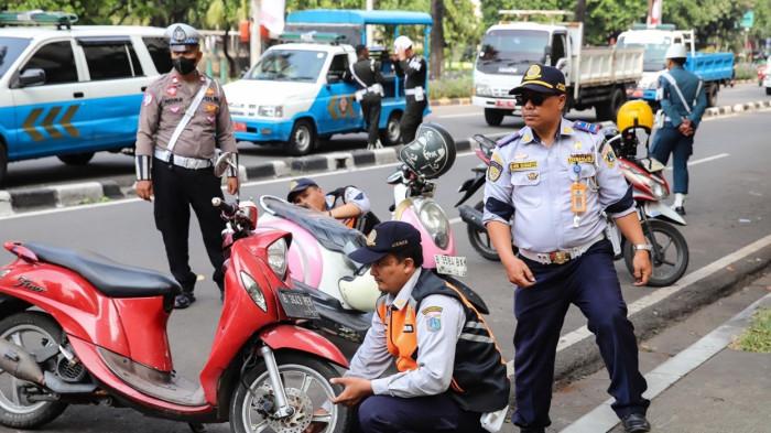 Gelar Opearsi Parkir Liar di Kemayoran Jakpus, Petugas Kempeskan Ban Puluhan Sepeda Motor