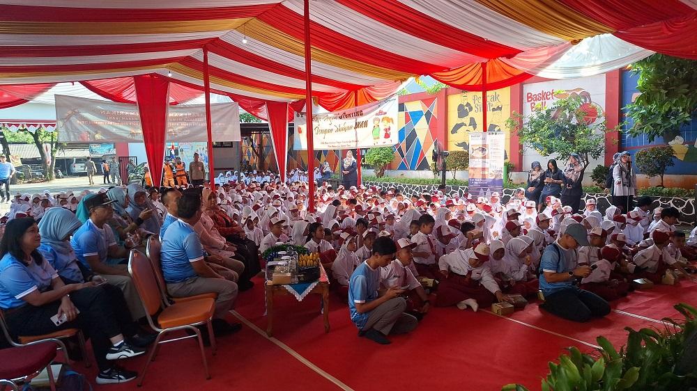 Ratusan anak-anak sudah berkumpul di halaman sekolah untuk mengikuti kegiatan tersebut dengan berbagai pertunjukan.