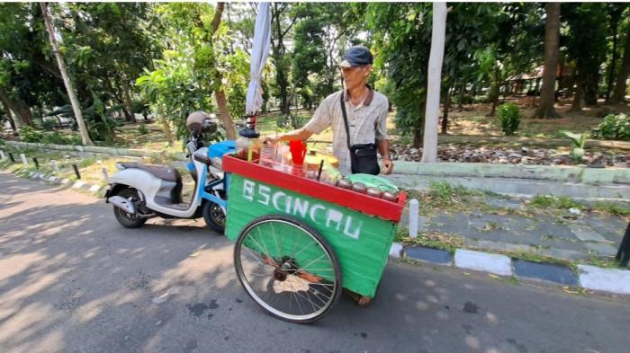 Tiap Hari Maman Berjalan Puluhan Kilometer sambil Berharap Es Cincau Dagangannya Habis Terjual