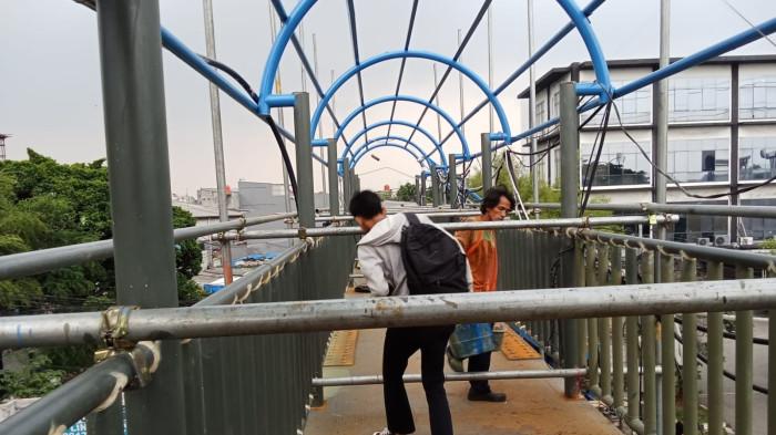 Dari yang nampak di lokasi, JPO tersebut nampak sedang dalam perbaikan.