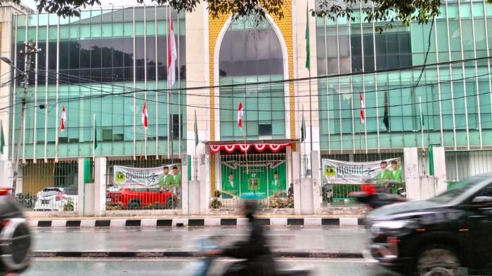Terlihat gerbang hijau kantor partai berlambang Ka’bah itu tertutup rapat.