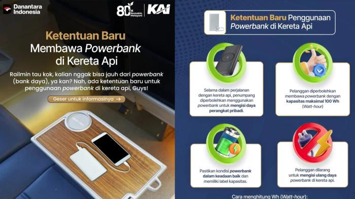 “Powerbank memang praktis, tetapi jika digunakan tidak sesuai aturan dapat menimbulkan risiko kebakaran yang berpotensi mengganggu keselamatan perjalanan. Karena itu, kami mengatur batasan kapasitas dan larangan penggunaannya di stopkontak kereta,” ungkapnya dihubungi pada Kamis (23/10/2025).