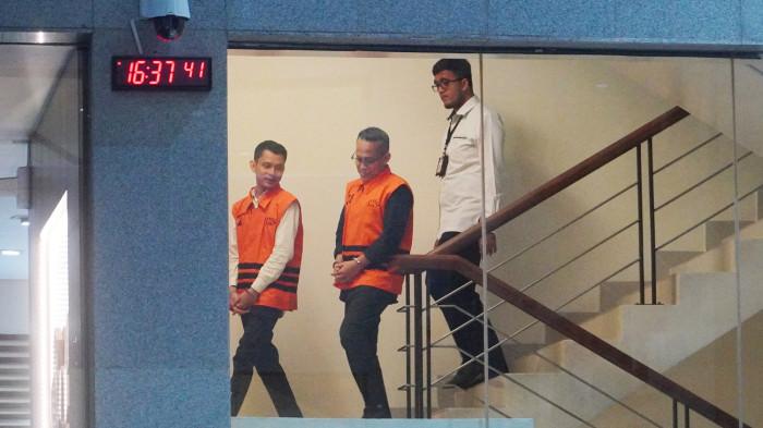 WARTAKOTALIVE.COM, JAKARTA - Mantan staf Direktorat Pengendalian Penggunaan Tenaga Kerja Asing (PPTKA) Ditjen Binapenta dan PKK Kemnaker tahun 2019-2024 Jamal Shodiqin (kiri) dan Alfa Eshad (kanan) berlajan keluar usai menjalani pemeriksaan lanjutan di Gedung Merah Putih KPK, Setiabudi, Jakarta Selatan, Rabu (29/10/2025).