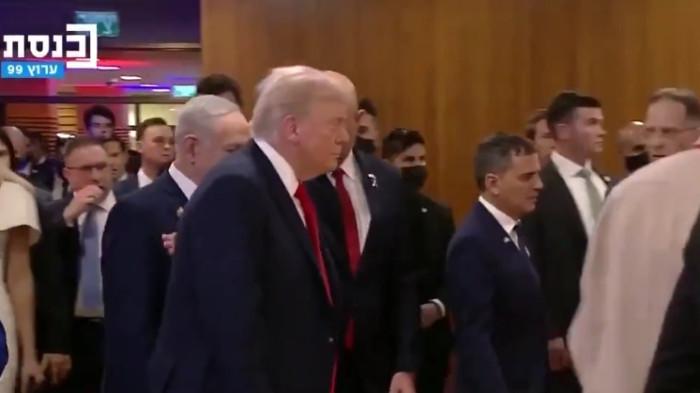 Detik-detik Netanyahu Ditinggal Donald Trump Saat Berjalan di Parlemen Israel