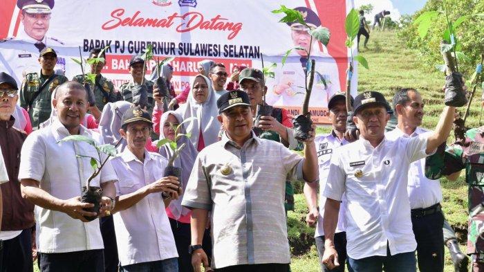 Pj Gubernur Sulawesi Selatan (Sulsel), Bahtiar Baharuddin membagikan 50 ribu bibit pohon kepada masyarakat dalam program Sedekah Pohon.